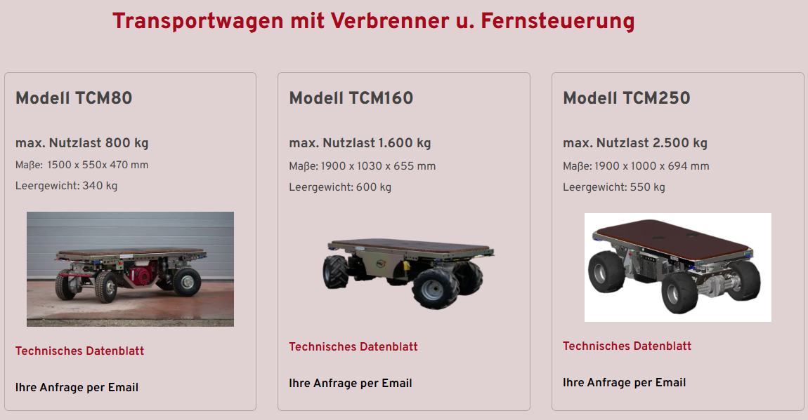 Şirket, zorlu ortamlarda taşıma için özel beceriler gerektirmeyen ağır yük taşıma kamyonu ve özelleştirilmiş robotlar üretmektedir.
